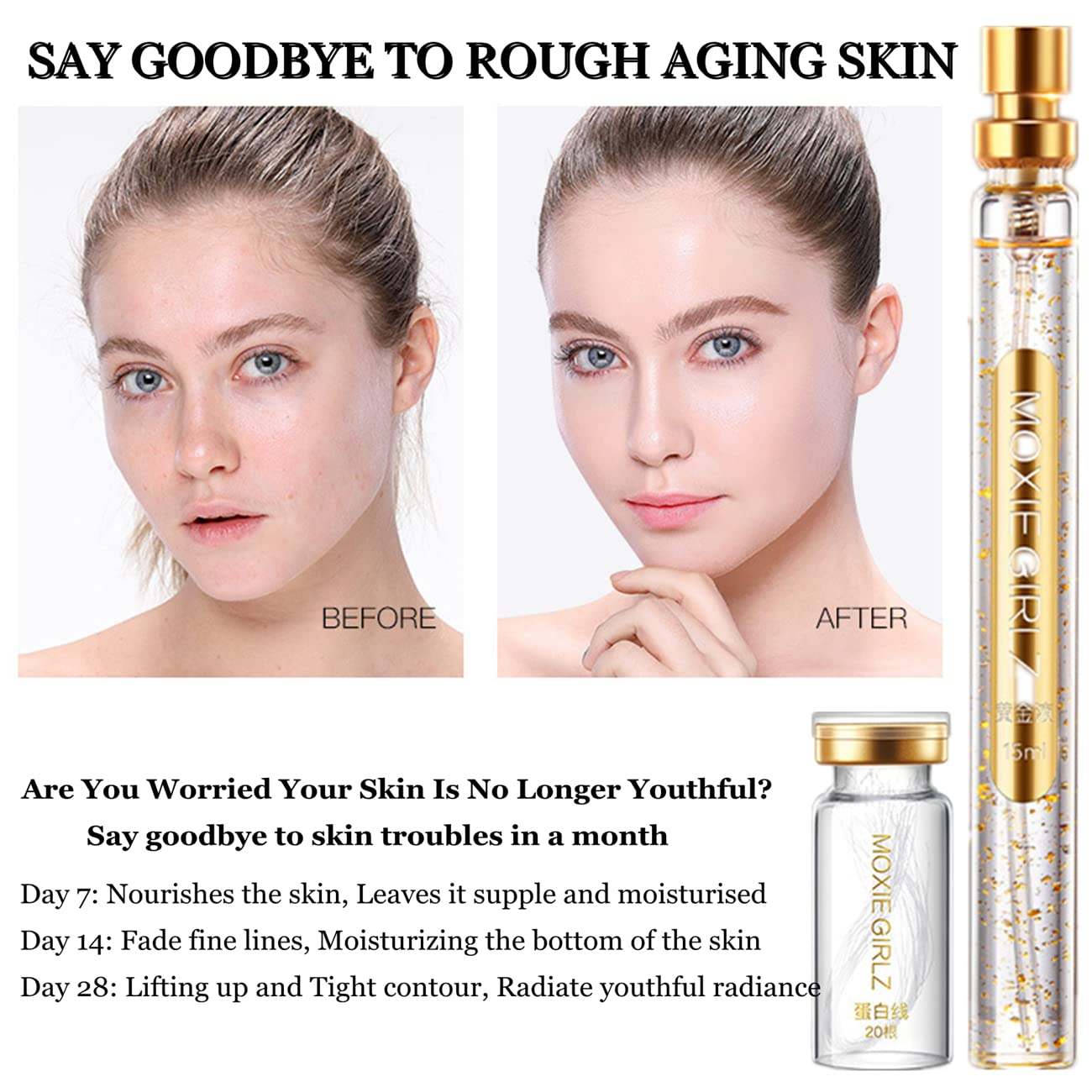 الكمية: 15 مل × 5 زجاجات سائل ذهبي + 20 خيط بروتين ذهبي (زجاجة واحدة).